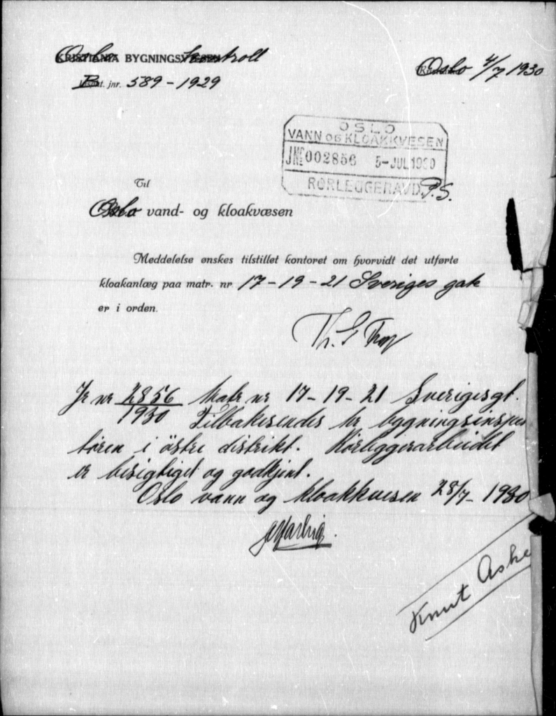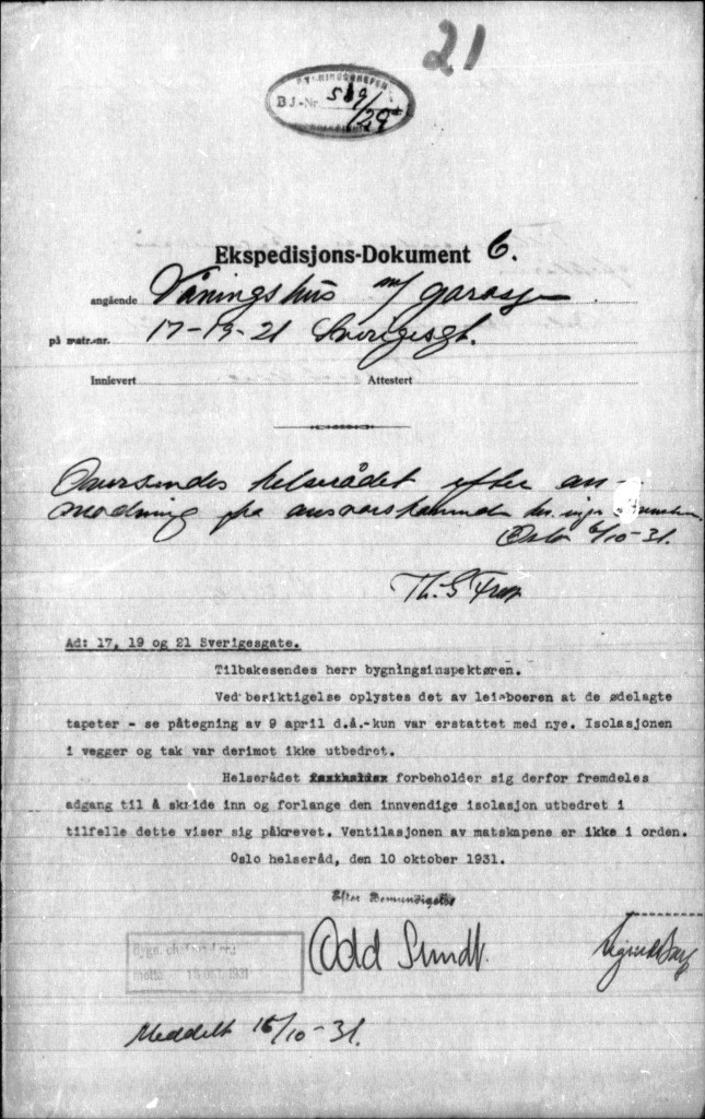 Det lå tidligere en liten bygning som ble brukt som verksted i hagen, og denne hadde adresse Sverigesgate 13.