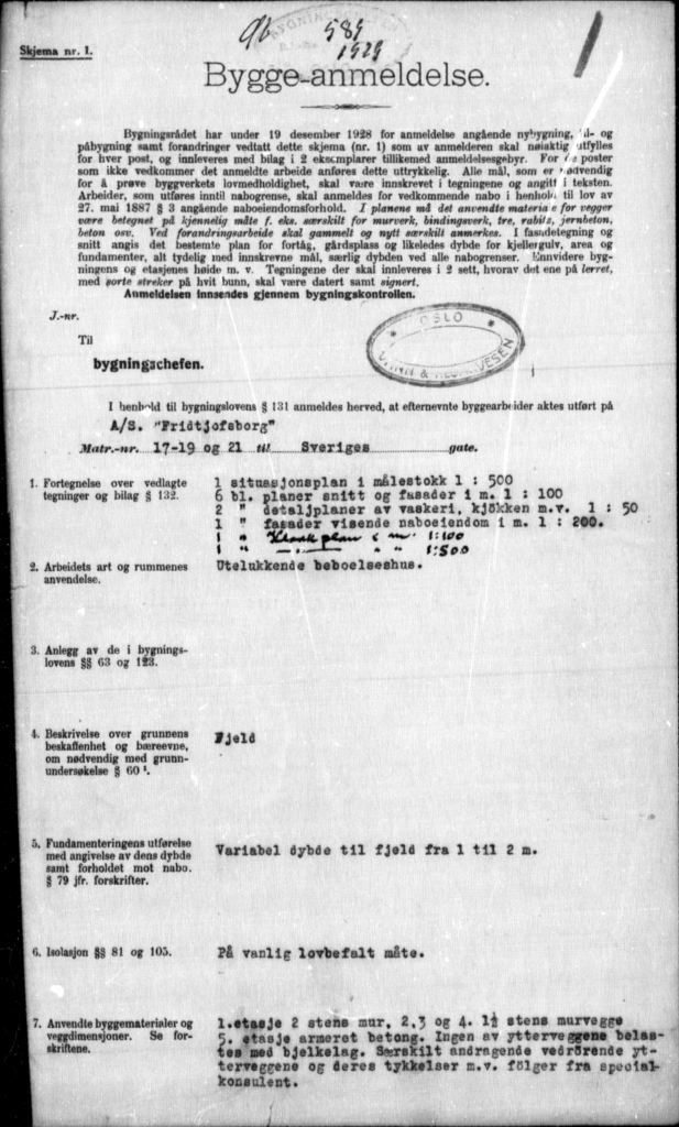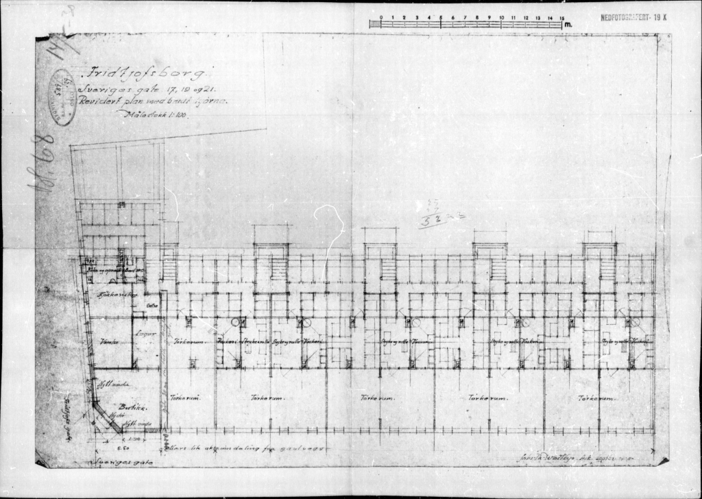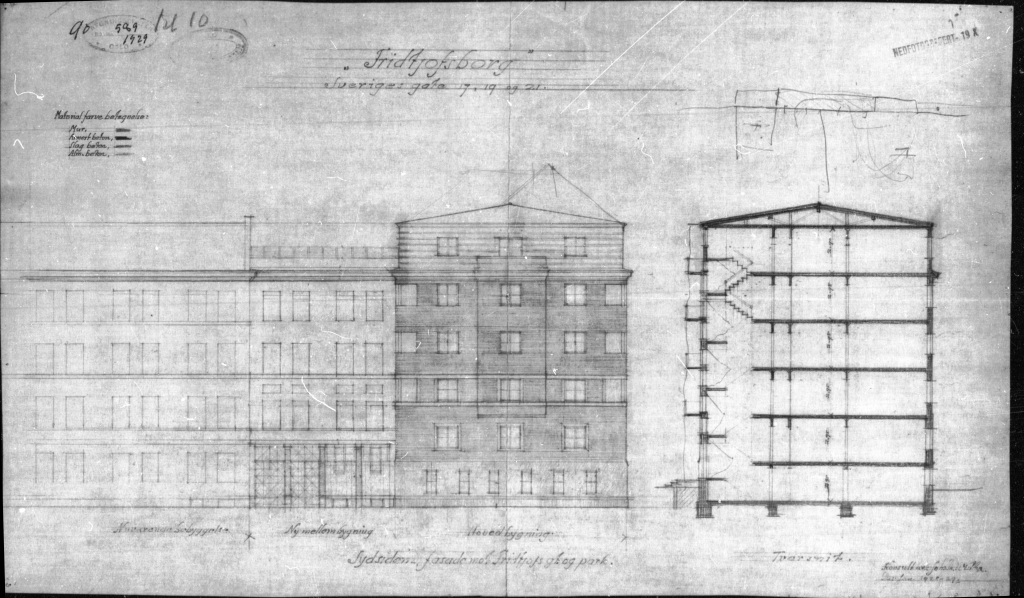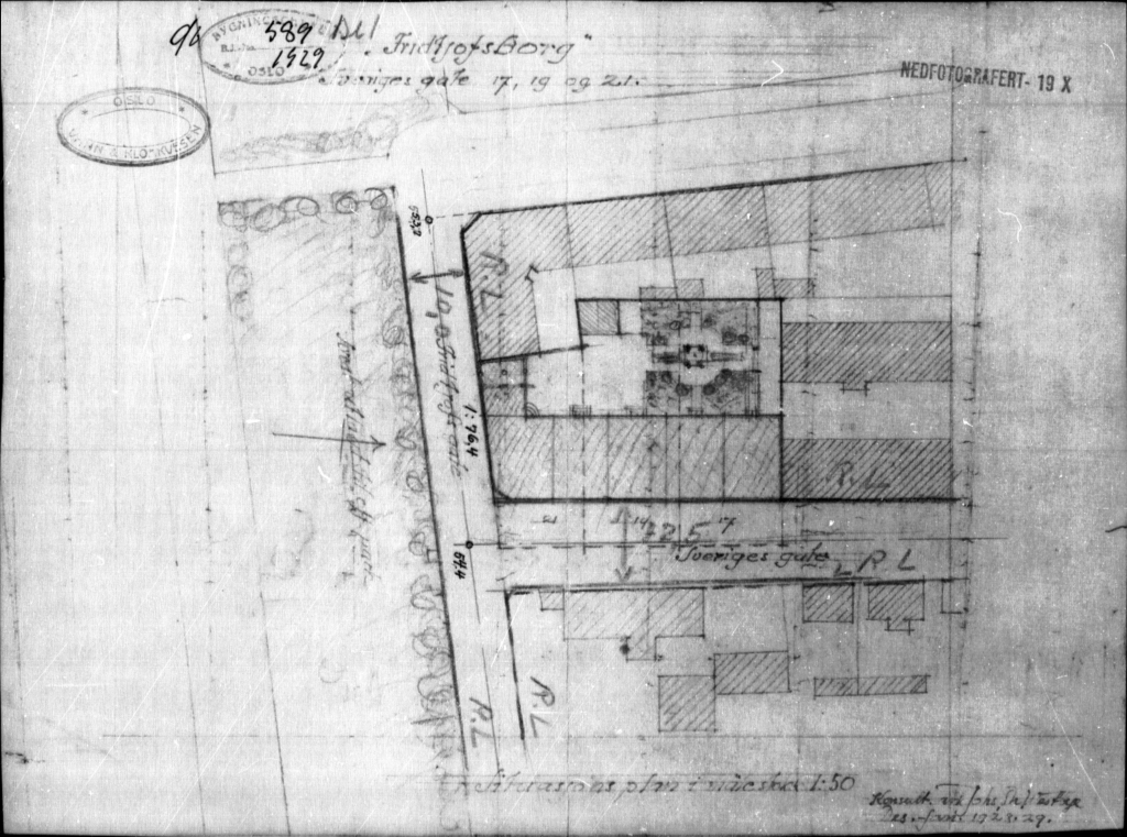 Fridtjofsborg sameie består av 56 leiligheter, et bryggeri og en bakhage som vi deler med to andre gårder. Gården ble bygget i 1929, og hadde opprinnelig tre adresser; Sverigesgate 17, 19 og 21. Idag har hele gården adresse Sverigesgate 17, med fem oppganger fra A til E.